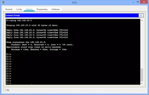 Setelah selesai melakukan konfigurasi Router statik, berikutnya yaitu melakukan pengetesan dengan cara ping IP Address di PC. Sebagai contoh dibawah ini dapat dilihat ping antar PC/Laptop yang telah sukses terhubung.